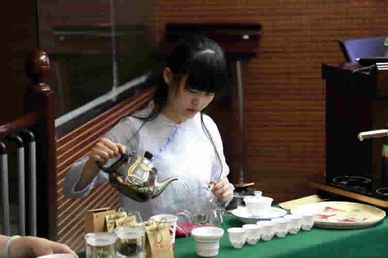 美女茶藝師馮爽為大家沖泡綠茶