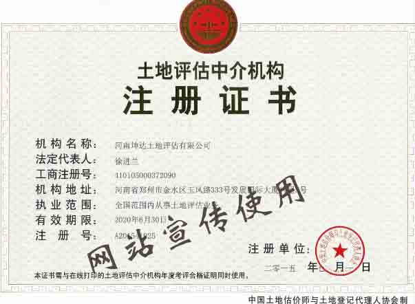 經(jīng)中國(guó)土地估價(jià)師與土地登記代理人協(xié)會(huì)審批,河南坤達(dá)土地評(píng)估公司資質(zhì)榮升全國(guó)執(zhí)業(yè),這是公司實(shí)力的見證,是各位領(lǐng)導(dǎo)、合作單位共同的關(guān)懷的喜事。
